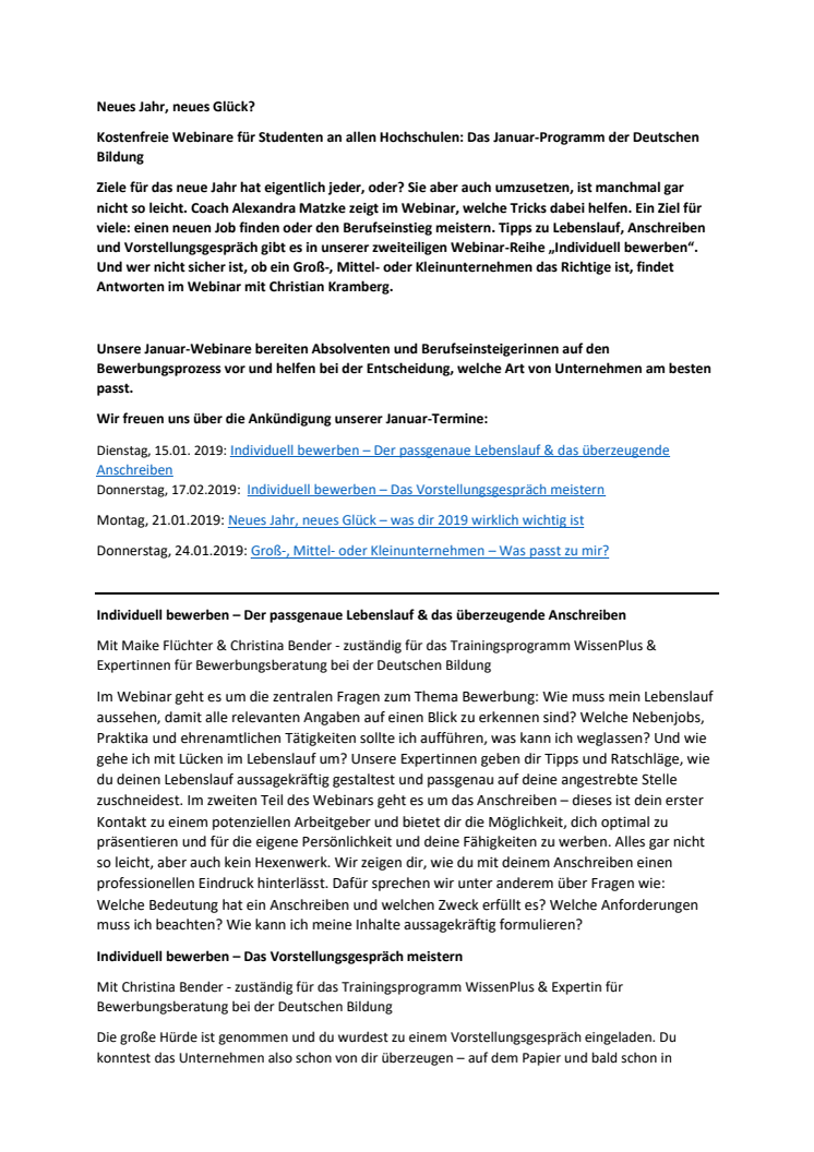 Neues Jahr, neues Glück? Kostenfreie Webinare für Studenten aller Hochschulen