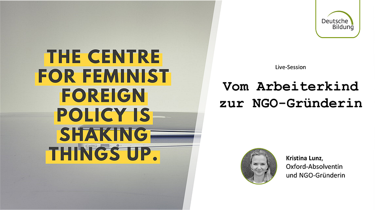 "Ein Bildungsaufstieg darf nicht Besonderes sein", sagt Kristina Lunz. Sie ist den Weg aus einer fränkischen Arbeiterfamilie bis an die Uni in Oxford gegangen, hat dort Diplomatie studiert und ist mittlerweile als Gründerin einer NGO für Feministische Außenpolitik in der ganzen Welt unterwegs. In unserer Online-Veranstaltung erzählt sie von ihren Erfahrungen, ihren Zielen und was sich ihrer Meinung nach für mehr Chancengerechtigkeit ändern muss. Teilnehmer sind herzlich eingeladen, Fragen zu stellen und mit Kristina zu diskutieren.